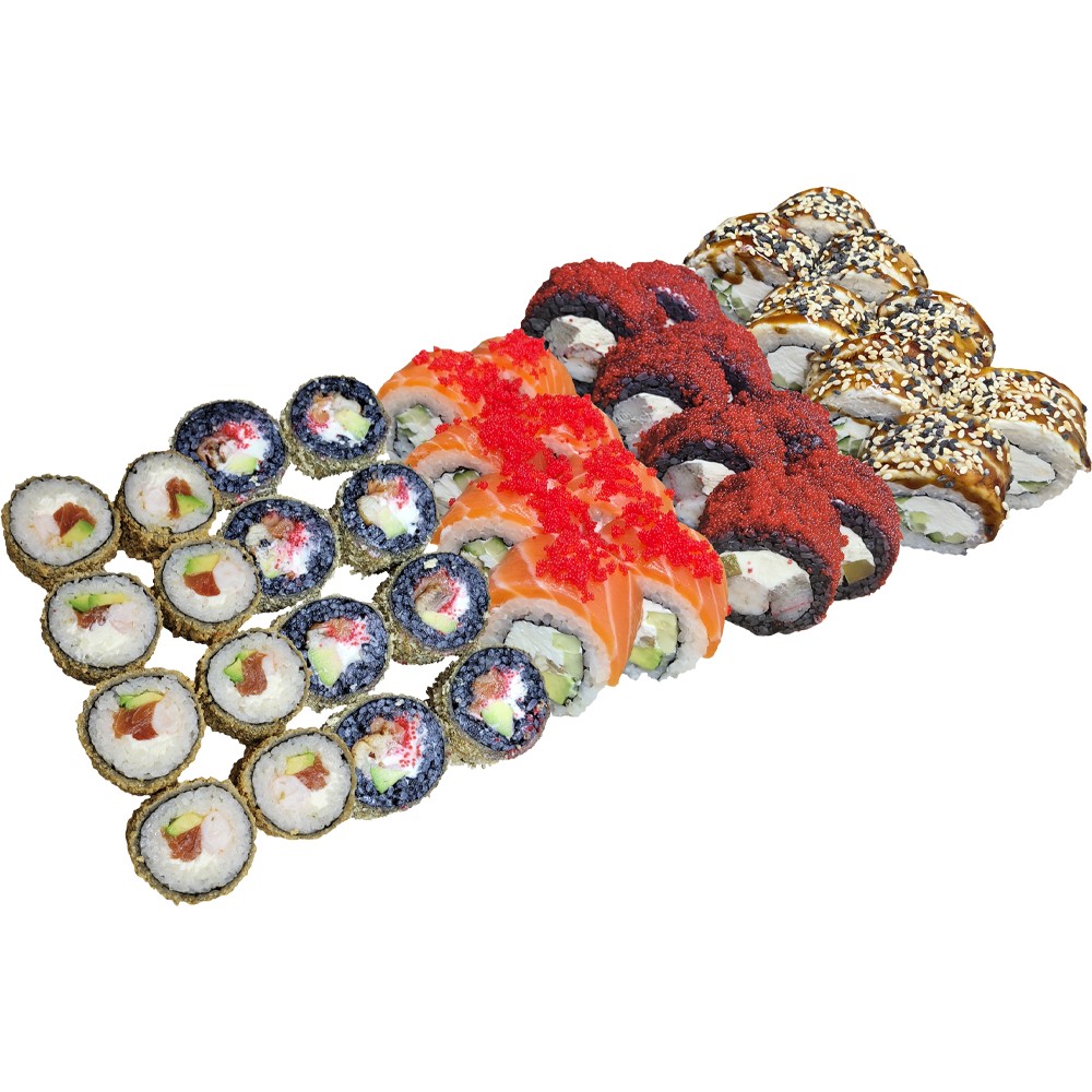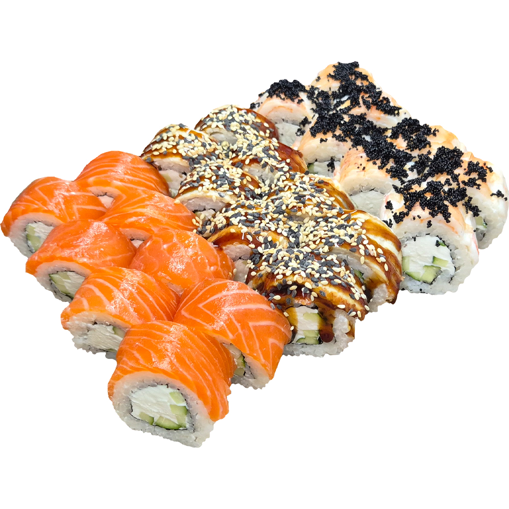 Топові величезні роли для вашого затишного свята: Філадельфія з лососем класична, Філадельфія Тобіко, Преміум Філадельфія з тигровою креветкою, хітовий Футорі та Джой і королівський Чорний Дракон!